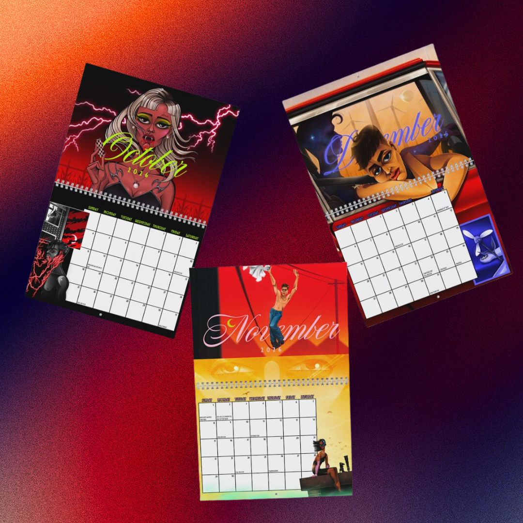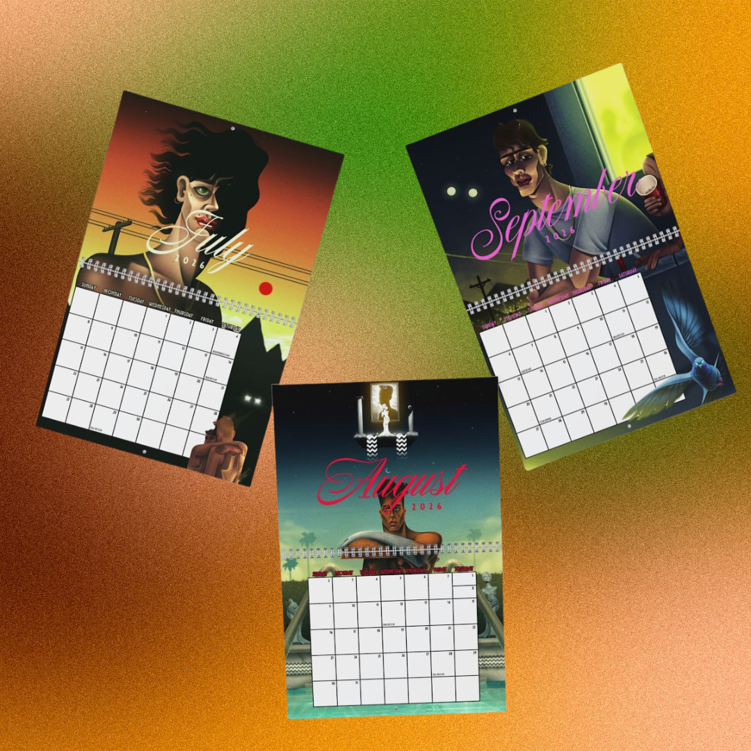 Brandan Ray's illustrated 2026 calendar. A dreamy collision of queer identity and the elemental churn of the seasons, this calendar turns the passing year into a visceral visual journey. FREE SHIPPING
